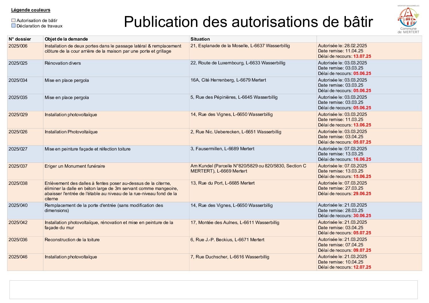 Demande d'autorisation de bâtir / Déclaration des travaux